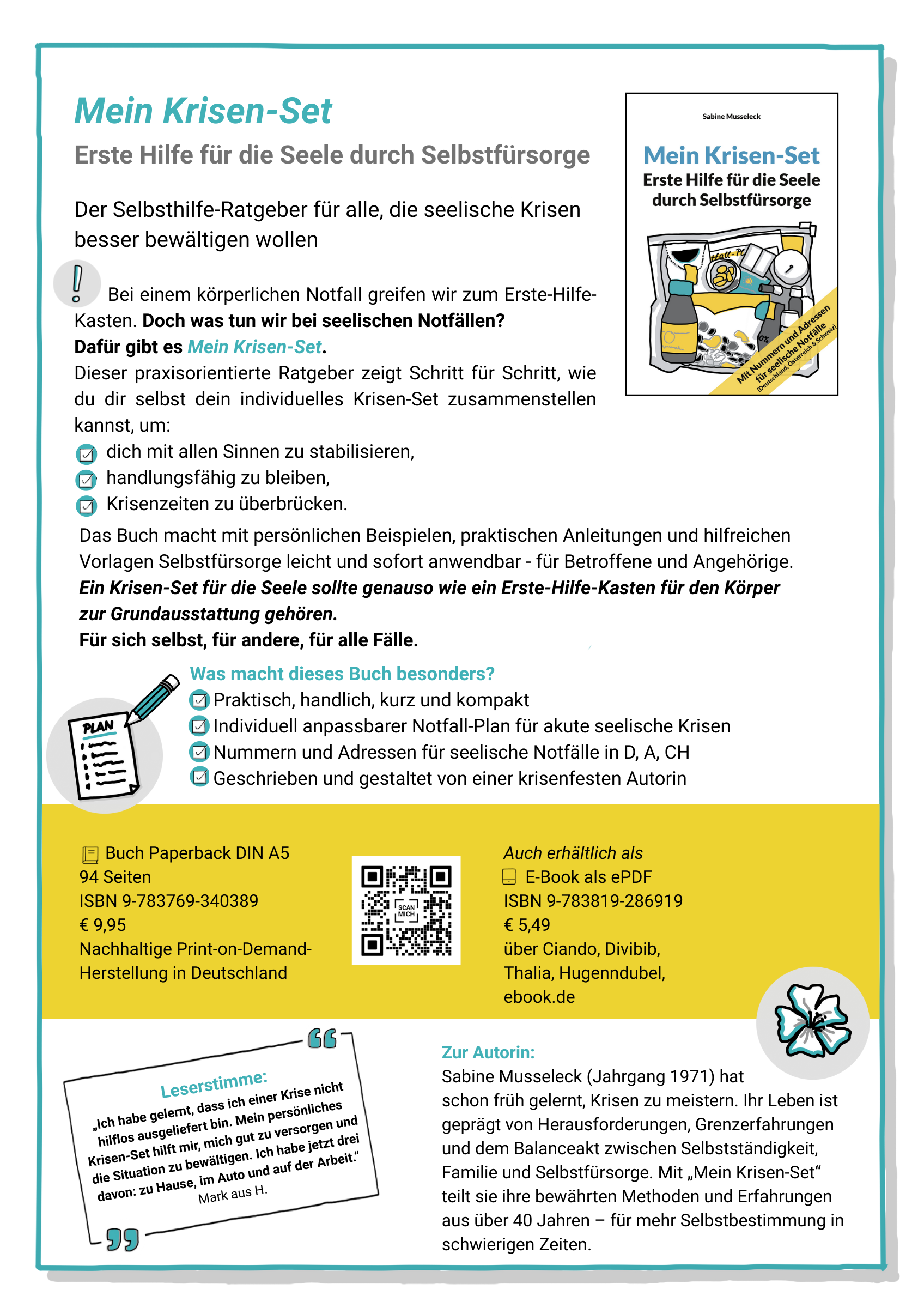 Seit dem 26.04.2025 ist mein Ratgeber in der Printversion unter der ISBN 9-783769-340389 überall im Buchhandel erhältlich.